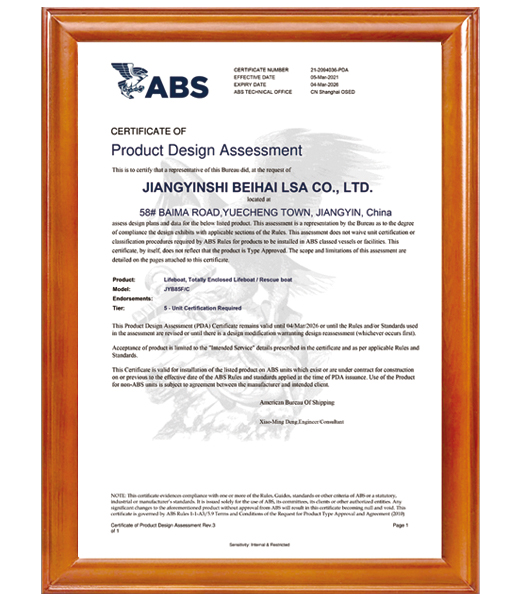 江陰市北海救生設備有限公司創(chuàng)建于2000年,坐落于江蘇省江陰市月城鎮白馬路58號,南瀕太湖、北臨長江、位于錫澄運河河畔,交通及地理位置十分便利。公司占地面積50000多平方米,現有員工200余名,其中博士1名,高級工程師3名,其他各類專業(yè)工程技術人員40余名...